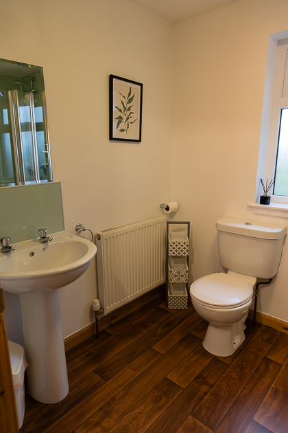 The accommodation includes two comfortable double bedrooms and a single bedroom, making the cottage well suited to couples, families, or small groups. A large utility room offers generous practical space, complemented by an additional shower room for added convenience—particularly welcome after beach days or longer outdoor outings.